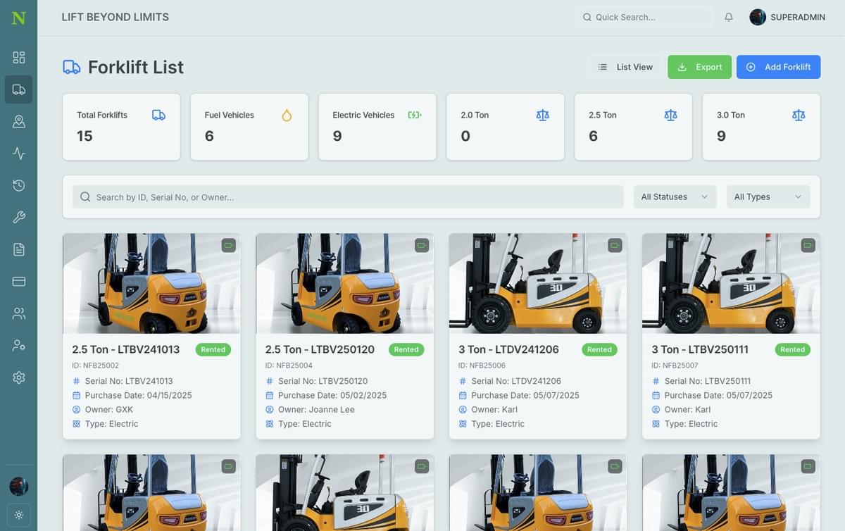 Through the Nexor management system, you can comprehensively monitor your forklift and easily achieve the following functions: Real-time status is all at your fingertips; Precise positioning and optimized scheduling; Active asset security protection; Fine management of contracts and accounts